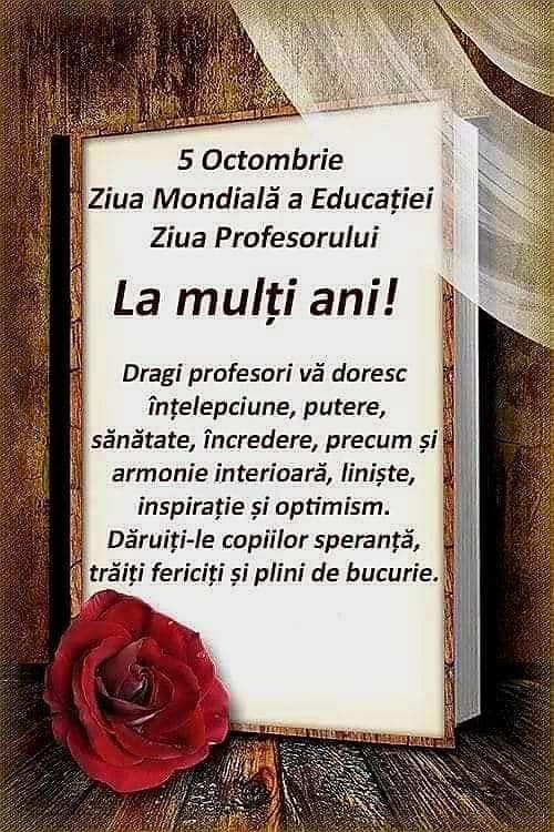 Read More𝟓 𝐨𝐜𝐭𝐨𝐦𝐛𝐫𝐢𝐞 – 𝐙𝐢𝐮𝐚 𝐌𝐨𝐧𝐝𝐢𝐚𝐥𝐚̆ 𝐚 𝐄𝐝𝐮𝐜𝐚𝐭̦𝐢𝐞𝐢 „𝑁𝑢 𝑒𝑥𝑖𝑠𝑡𝑎̆ 𝑎𝑟𝑡𝑎̆ 𝑚𝑎𝑖 𝑓𝑟𝑢𝑚𝑜𝑎𝑠𝑎̆ 𝑑𝑒𝑐𝑎̂𝑡 𝑎𝑟𝑡𝑎 𝑒𝑑𝑢𝑐𝑎𝑡̧𝑖𝑒𝑖. 𝑃𝑖𝑐𝑡𝑜𝑟𝑢𝑙 𝑠̧𝑖 𝑠𝑐𝑢𝑙𝑝𝑡𝑜𝑟𝑢𝑙 𝑓𝑎𝑐 𝑑𝑜𝑎𝑟 𝑓𝑖𝑔𝑢𝑟𝑖 𝑓𝑎̆𝑟𝑎̆ 𝑣𝑖𝑎𝑡̧𝑎̆, 𝑑𝑎𝑟 𝑒𝑑𝑢𝑐𝑎𝑡𝑜𝑟𝑢𝑙 𝑐𝑟𝑒𝑎𝑧𝑎̆ 𝑢𝑛 𝑐ℎ𝑖𝑝 𝑣𝑖𝑢; 𝑢𝑖𝑡𝑎̂𝑛𝑑𝑢-𝑠𝑒 𝑙𝑎 𝑒𝑙, 𝑠𝑒 𝑏𝑢𝑐𝑢𝑟𝑎̆ 𝑠̧𝑖 𝑜𝑎𝑚𝑒𝑛𝑖𝑖, 𝑠𝑒 𝑏𝑢𝑐𝑢𝑟𝑎̆ 𝑠̧𝑖 𝐷𝑢𝑚𝑛𝑒𝑧𝑒𝑢”.- 𝑆𝑓𝑎̂𝑛𝑡𝑢𝑙 𝐼𝑜𝑎𝑛 𝐺𝑢𝑟𝑎̆ 𝑑𝑒 𝐴𝑢𝑟 La mulți ani, tuturor profesorilor!